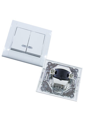 • 42001023, Выключатель 2 кл с подсветкой встроенный монтаж