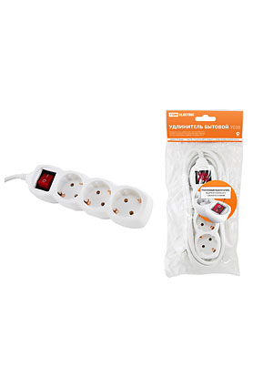 • SQ1303-0102, Удлинитель бытовой  У03В выключатель, 3 гнезда, 5метров, с заземлением, ПВС 3х1мм2  16А/250В