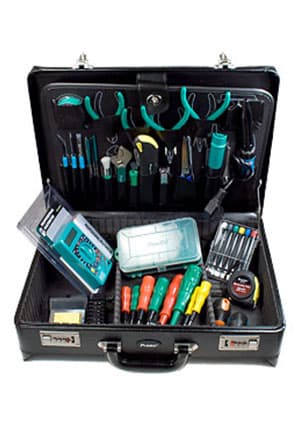 • 9TC-700 кейс • 103-132C кассетница для электрокомпонентов • 1PK-036S длинногубцы (135 мм) • 1PK-037S бокорезы (110 мм) • 1PK-054S утконосы (135 мм) • 1PK-055S длинногубцы с загнутым носиком (130 мм) • 1PK-108T пинцет обратного действия (165 мм) • 1PK-362D подставка под паяльник с губкой • 1PK-H026 разводной ключ 6" • 1PK-SC109A быстронагреваемый паяльник с керамическим нагревательным элементом на 110В или 220В • отвёртки круглые с мягкой ручкой 2 шт. • отвёртки шлицевые с мягкой ручкой 4шт. • отвёртки крестовые с мягкой ручкой 4шт. • 8PK-154 щеточка для снятия грязи • 8PK-2061 набор прецизионных отверток (6 шт.) • 8PK-366N-G отсос для припоя • 903-150N-B профессиональный мультиметр • 9H002/9H002A набор складывающихся шестигранных ключей (7шт.) • 9IT пвх изолента • 9K002 ножницы для радиокомпонентов 6" • 9K003A-1 надфиль (прямоугольное сечение) • 9K003B-1 надфиль (круглое сечение) • 9S001 припой 63% SN