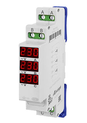 4640016938421, ВР-М03 АС15-450В УХЛ4, вольтметр 3ф на DIN 15-450VAC индикация без N