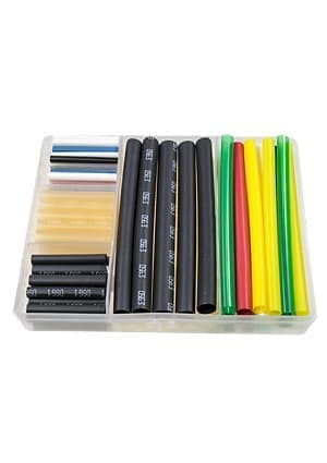 В состав набора входит 2 типоразмера термоусадочной трубки Deray PBF с усадкой в 4 раза, минимум по 5 разных цветов каждого диаметра. Трубки обладают высокой механической прочностью. Стойкие к воздействию окружающей среды, ультрафиолету. Используются для изоляции и цветовой идентификации цепей заземления, а так же для защиты и изоляции изделий с большими перепадами диаметров.